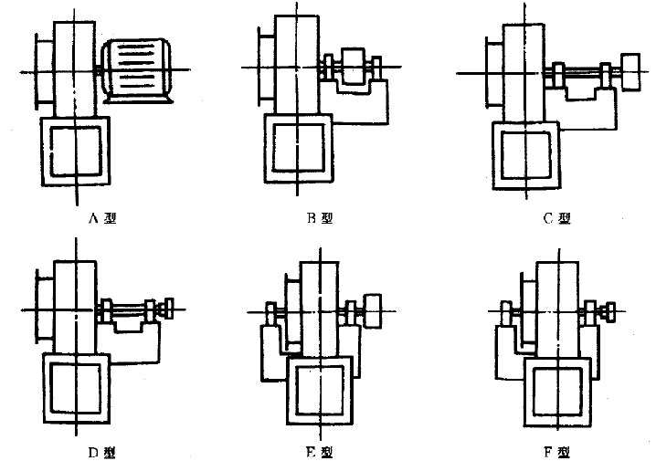3、皮帶傳動(dòng)。皮帶傳動(dòng)顧名思義就是通過(guò)皮帶與皮帶輪來(lái)驅(qū)動(dòng)風(fēng)機(jī)的運(yùn)轉(zhuǎn)。皮帶傳動(dòng)式由于皮帶輪位置的不同又可分為4種形式