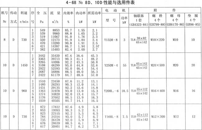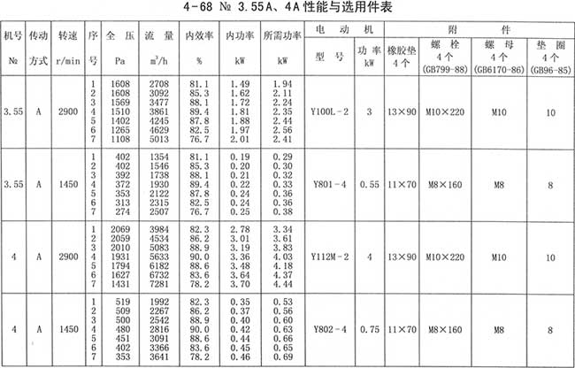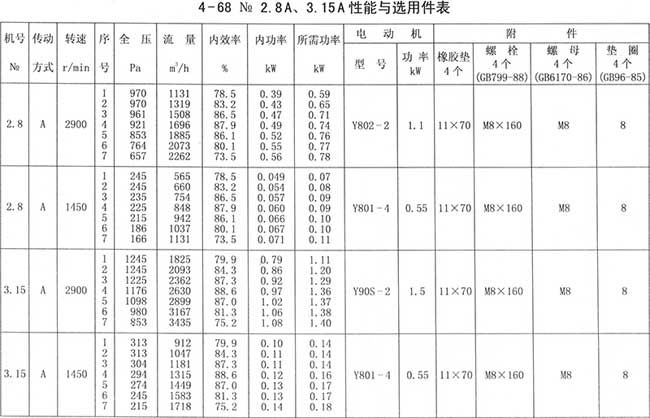 機號為2.8~5的4-68型風(fēng)機主要由葉輪、機殼、進風(fēng)口等直聯(lián)電機的分布部件組成。 NO6.3~20號除上述部分外還有傳動部分。